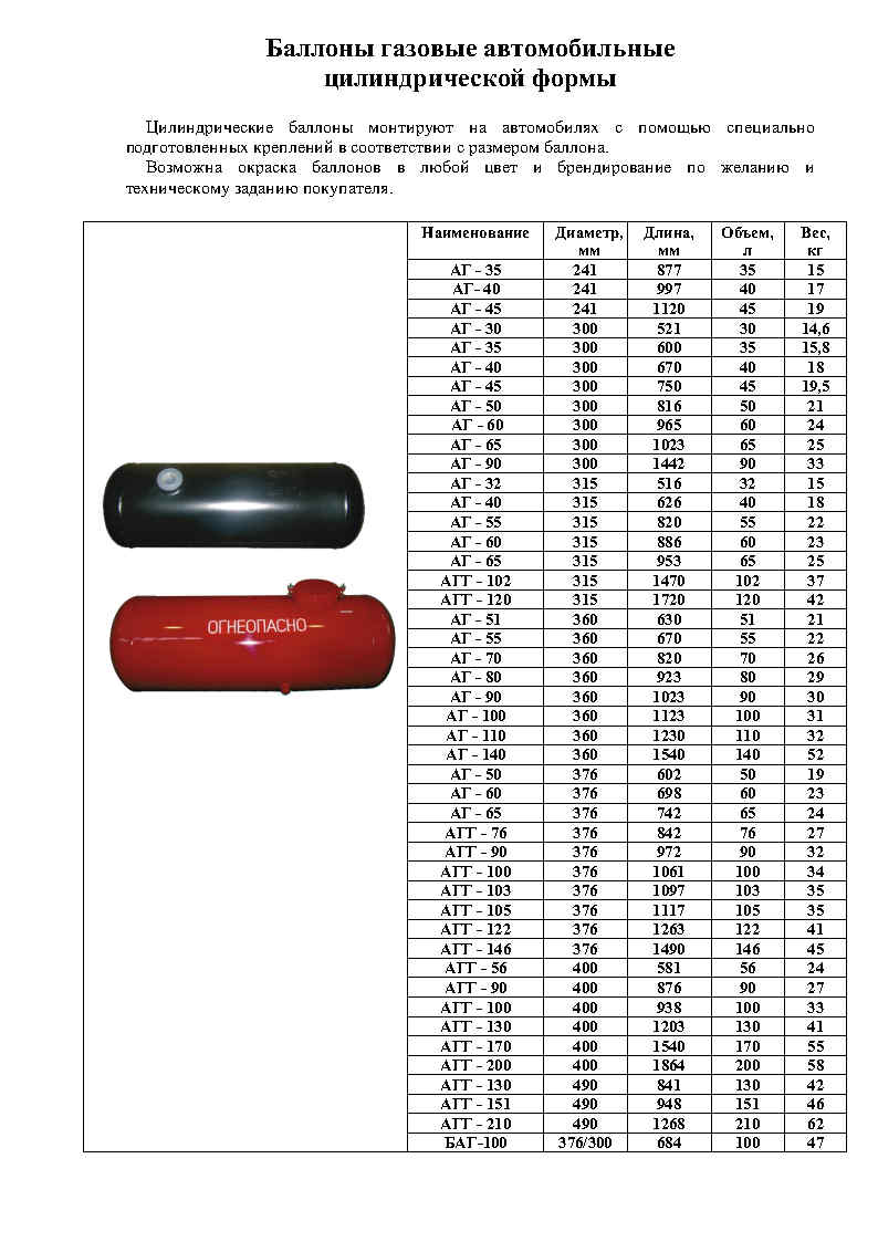 Баллоны газовые автомобильные цилиндрической формы