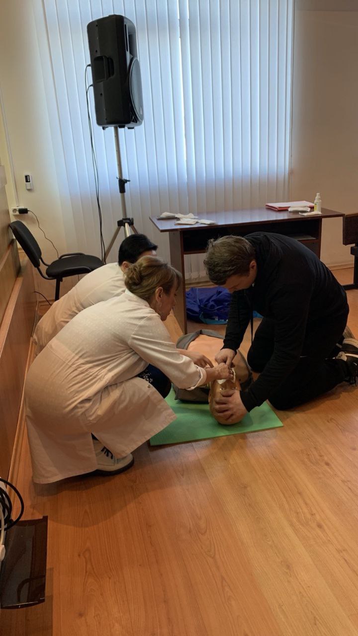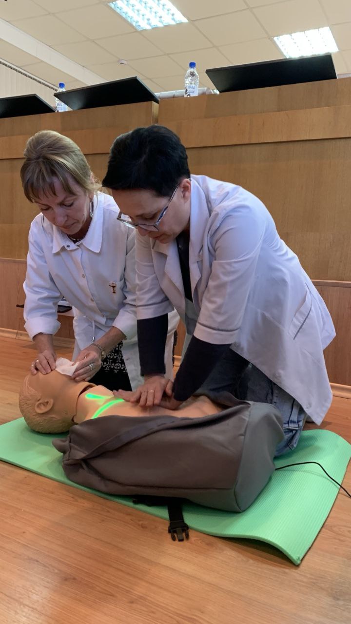 ✅ Врач-терапевт Рудинская Елена Анатольевна провела лекционное занятие по правилам оказания первой помощи. Для наглядности на лекции был представлен робот - тренажер, с помощью которого присутствующие практически отработали методы оказания первой помощи.