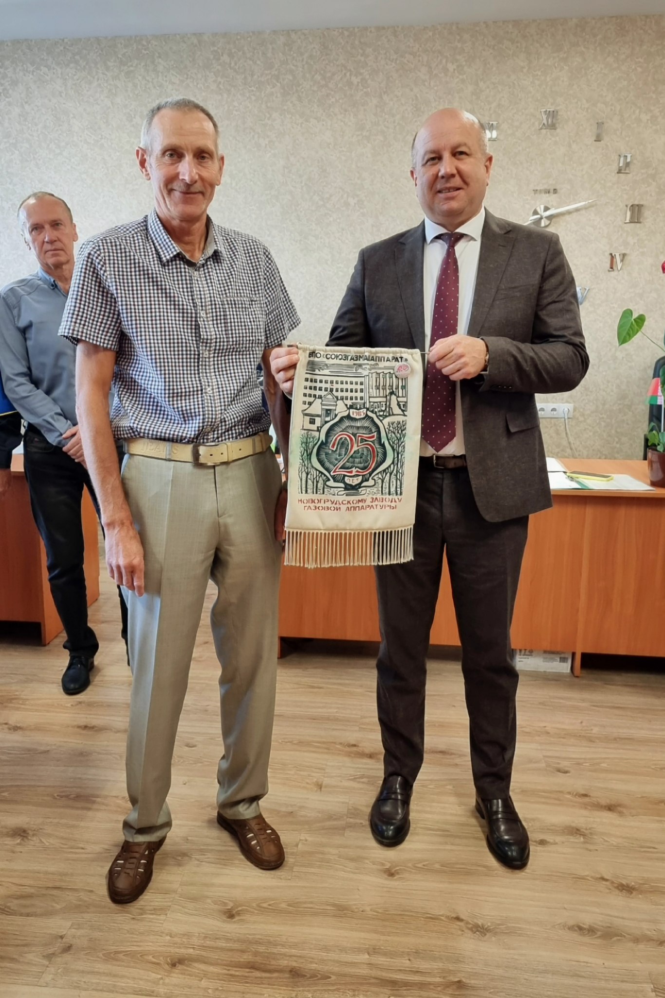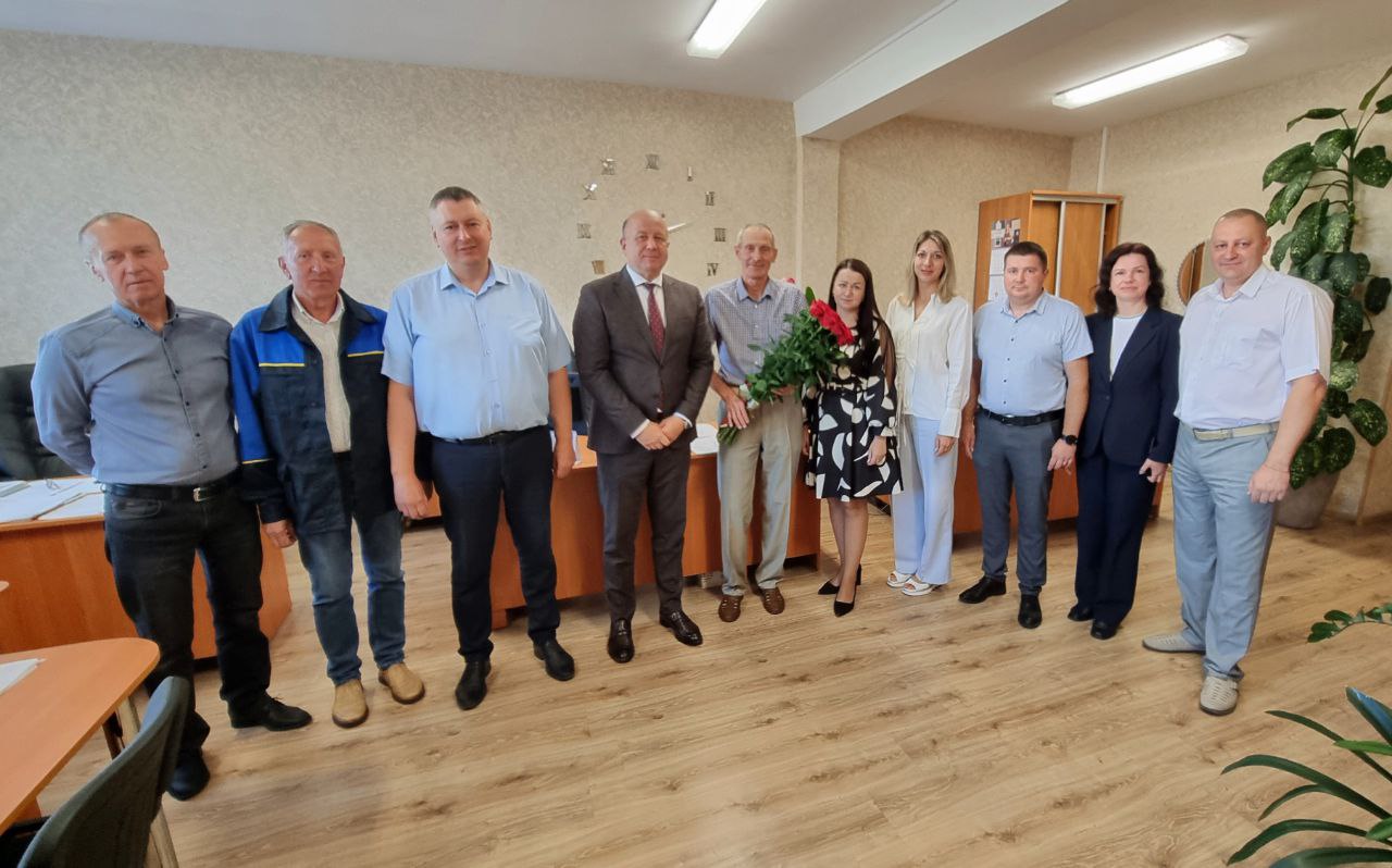 Сегодня руководство завода во главе с директором предприятия Игорем Николаевичем Каптиловичем, а также трудовой коллектив отдела в торжественной обстановке провели на заслуженный отдых начальника отдела комплектации оснастки и оборудования – Георгия Георгиевича МАЛЫЩИКА.