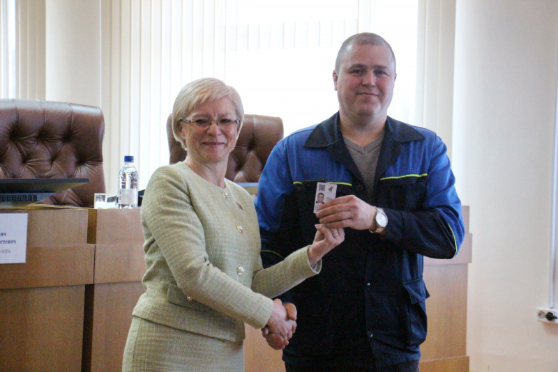 Три года назад, 18 марта 2023 года, в Минске состоялся учредительный съезд, на котором было принято решение о создании Белорусской партии «Белая Русь». Делегатами съезда были утверждены Программа и Устав партии, а также определена главная цель – построение независимой, сильной и процветающей Беларуси, консолидация общества на основе национальных интересов и традиционных ценностей. И глубоко символично, что 18 марта 2026 года, в эту знаковую дату 28 сотрудникам ОАО «НЗГА» председатель Новогрудского районного Совета депутатов, председатель районного отделения Белорусской партии «Белая Русь» Светлана Королько вручила партийные билеты.