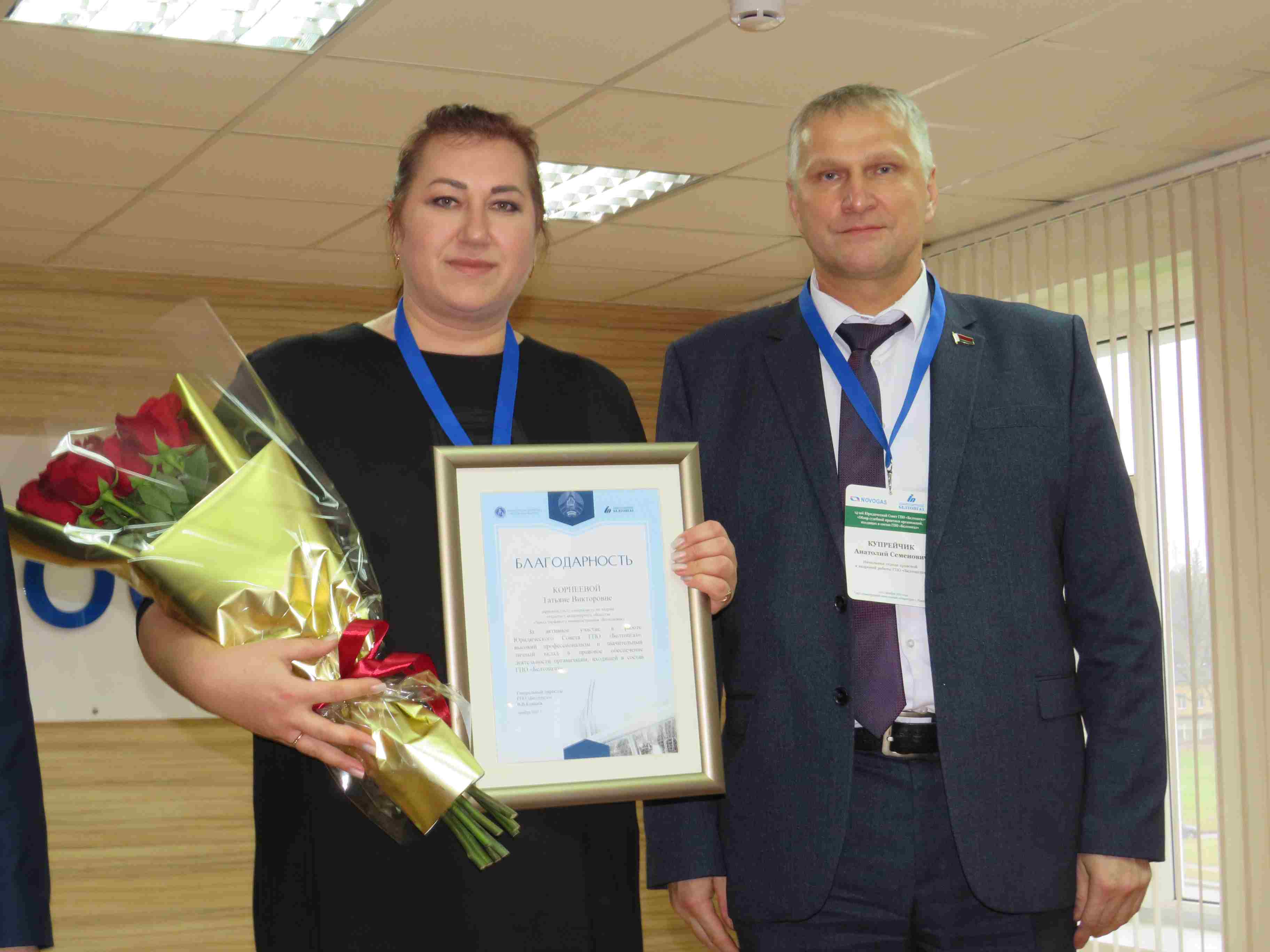 В завершении совещания за активное участие в работе Юридического Совета ГПО «Белтопгаз», за высокий профессионализм объявлена Благодарность ГПО «Белтопгаз»: