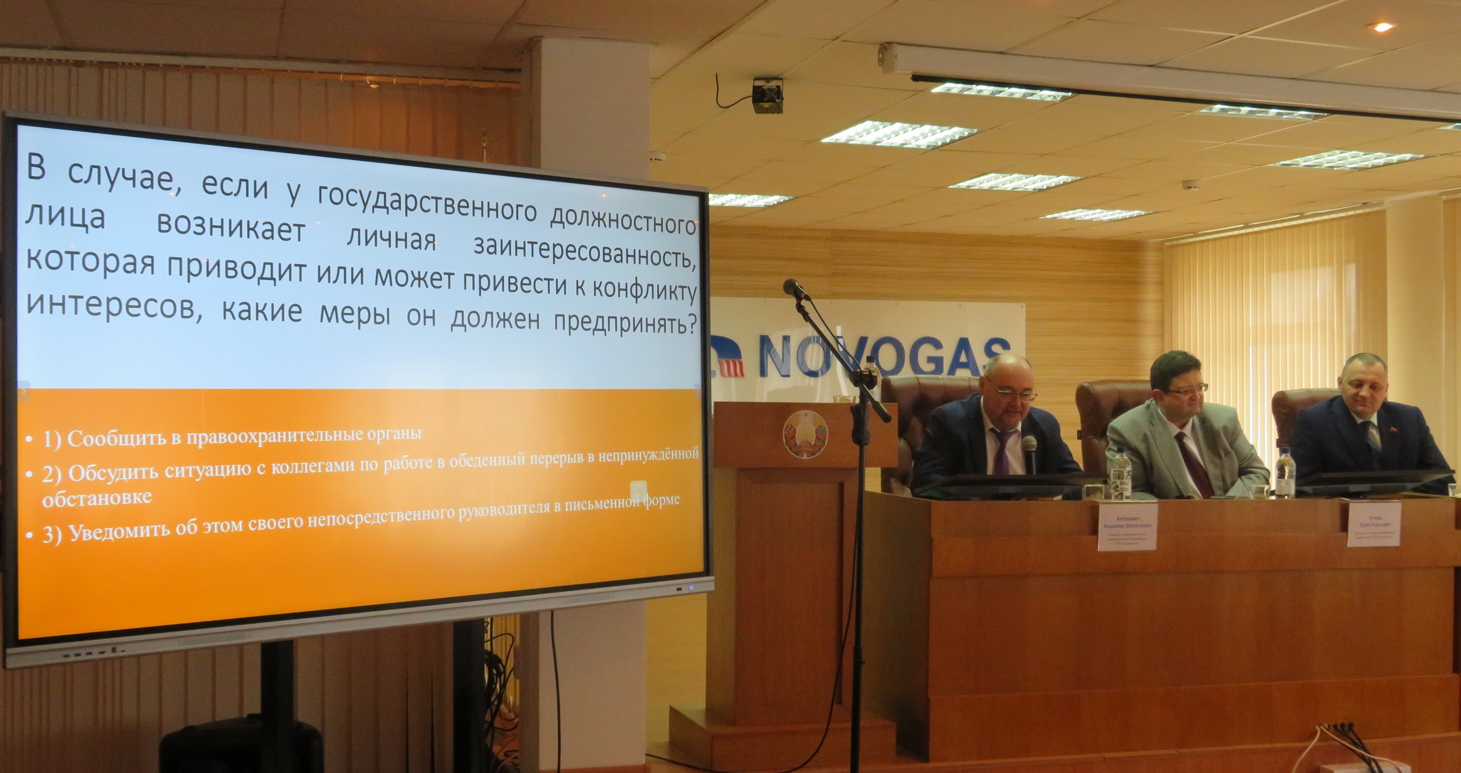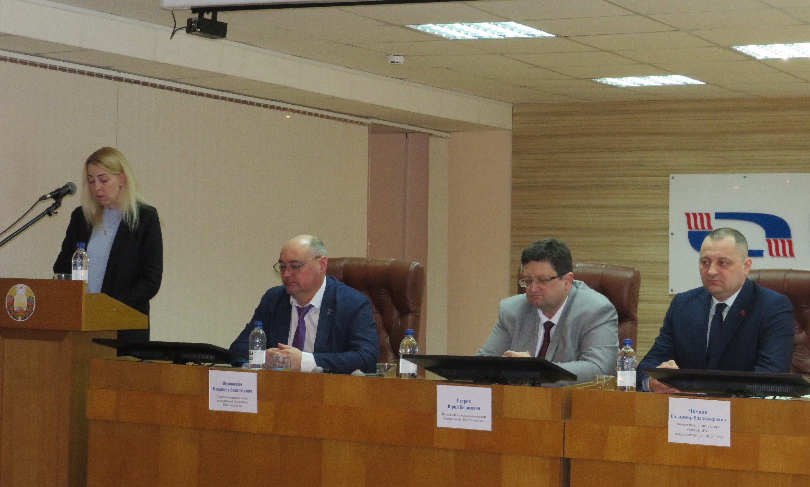 В заседании приняли участие начальник отдела экономической безопасности ГПО «Белтопгаз» Юрий Борисович ПУТРИК, главный специалист отдела экономической безопасности ГПО «Белтопгаз» Владимир Викентьевич ЯНУШКЕВИЧ и заместитель директора ОАО «НЗГА» по идеологической работе Владимир Владимирович ЧИЧКАН.