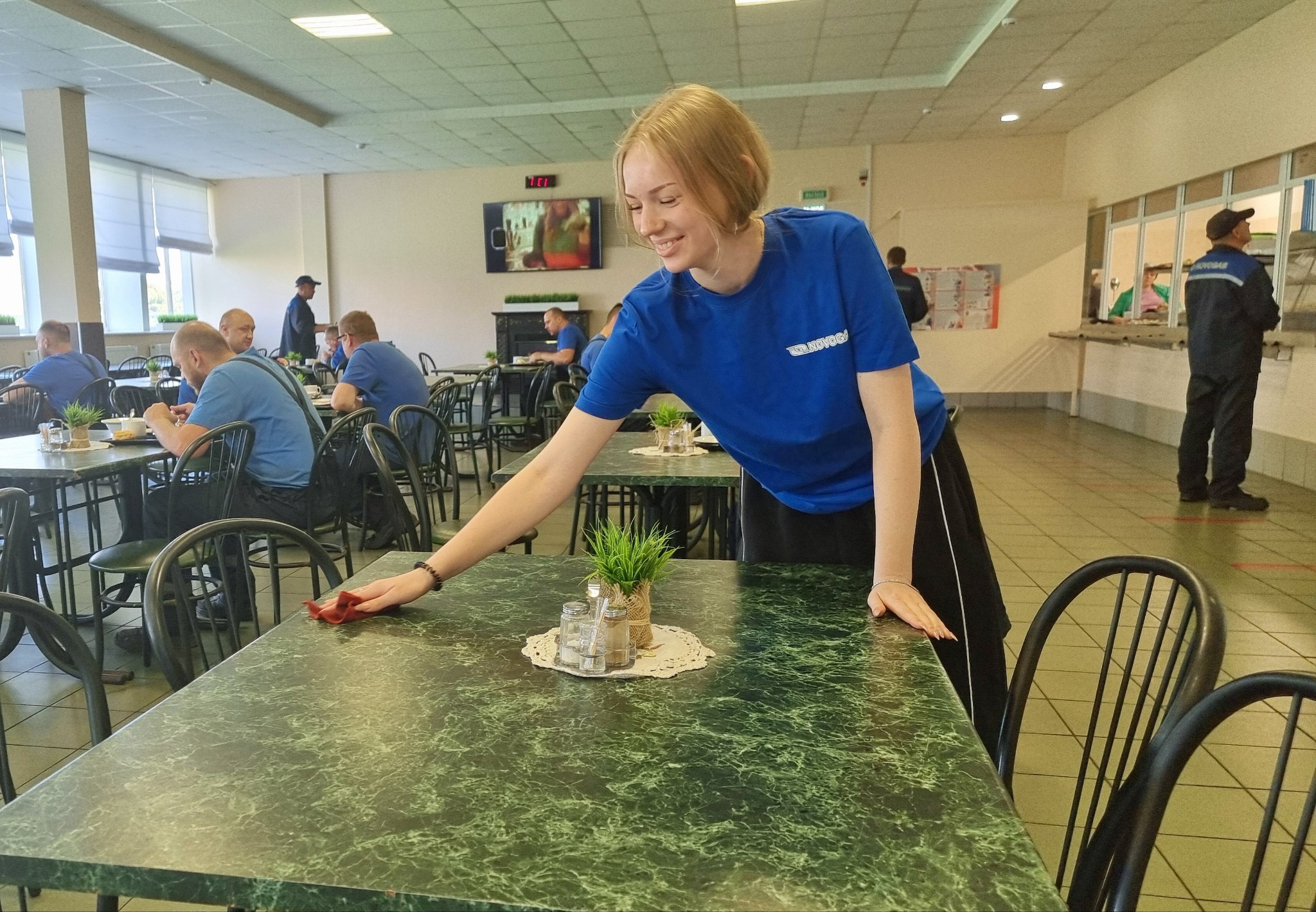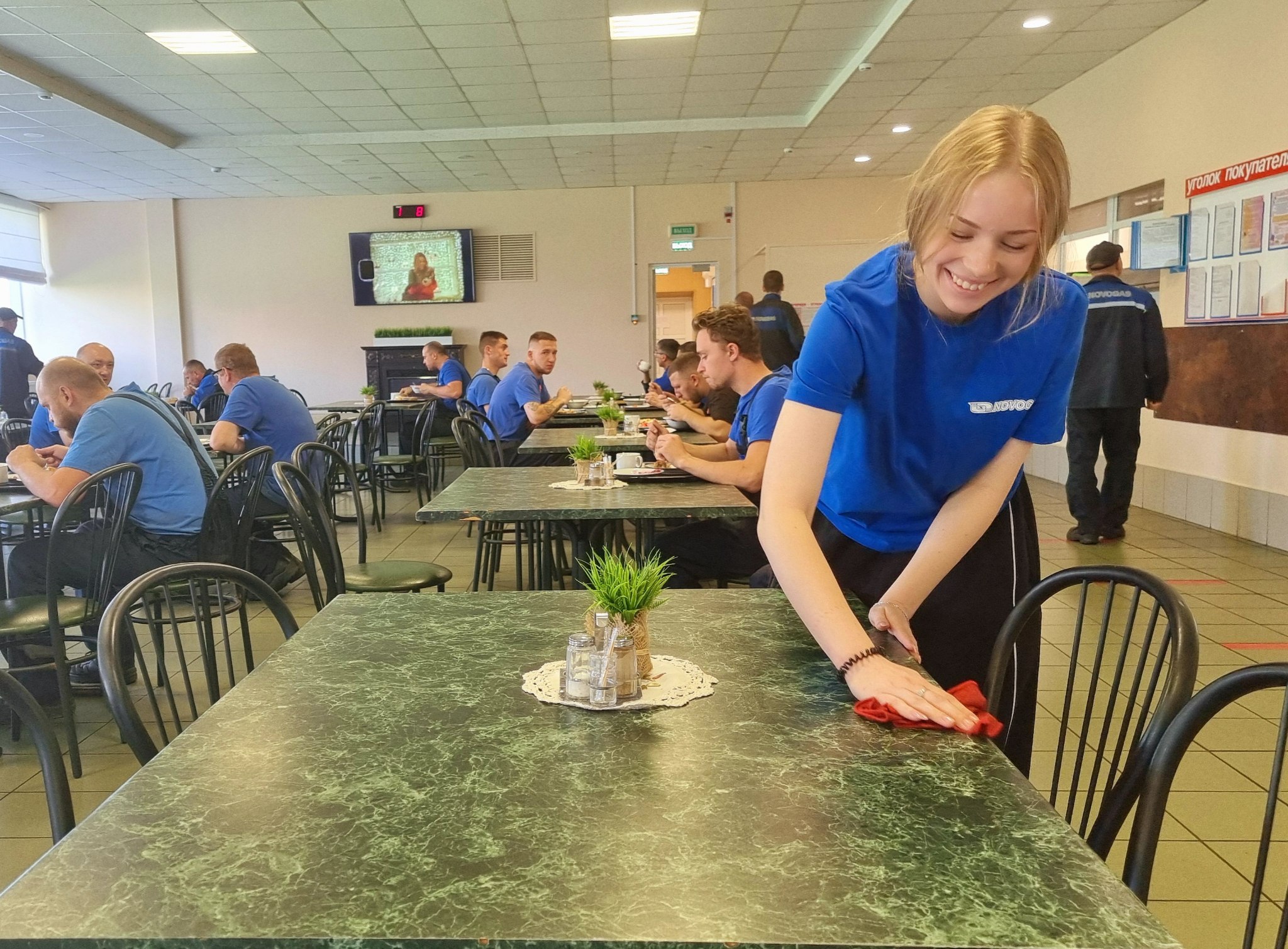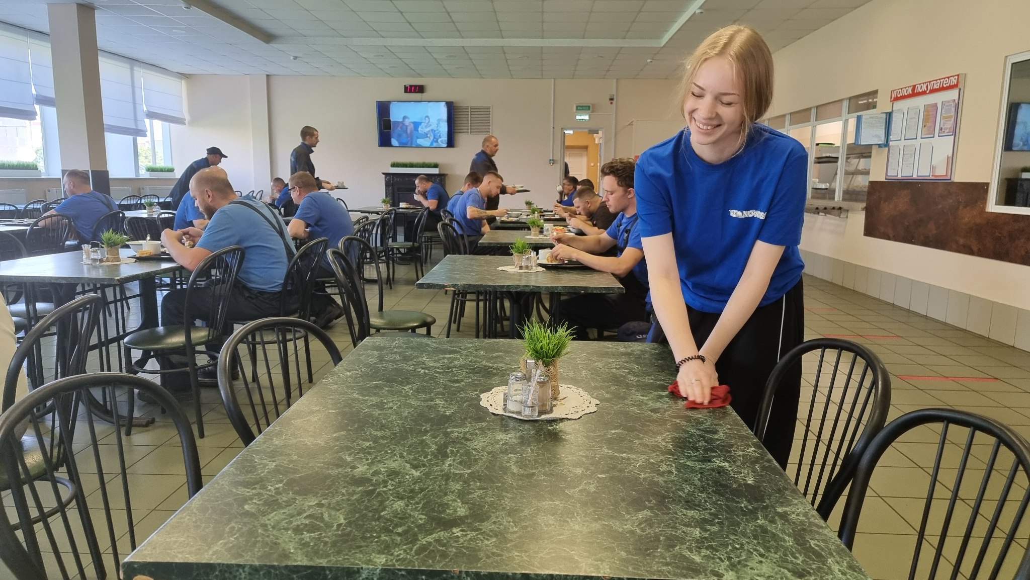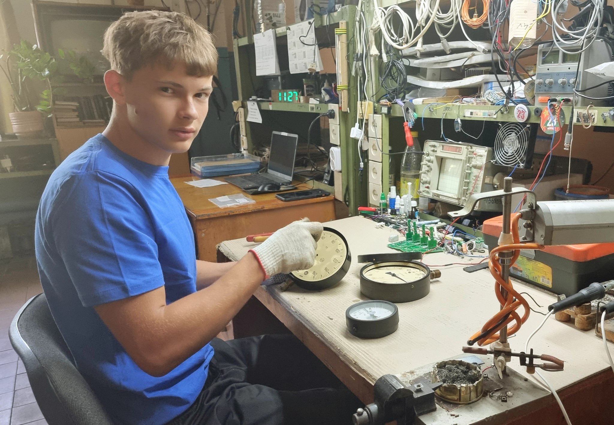 Бойцы нашего студотряда работают 4 часа в день и занимаются выполнением работ на разных участках и в разных структурных подразделениях. Фронт работы самый разнообразный: одни помогают с благоустройством территории, занимаясь прополкой, подметанием улиц, другие разборкой неисправных манометров и подготовкой приборов к сдаче на склад. Часть ребят задействована в административном корпусе завода. Например, девочки в отделе кадров занимаются систематизацией картотеки личных карточек работников предприятия, в столовой выполняют работы по уборке подсобных помещений и первичной обработке овощей.